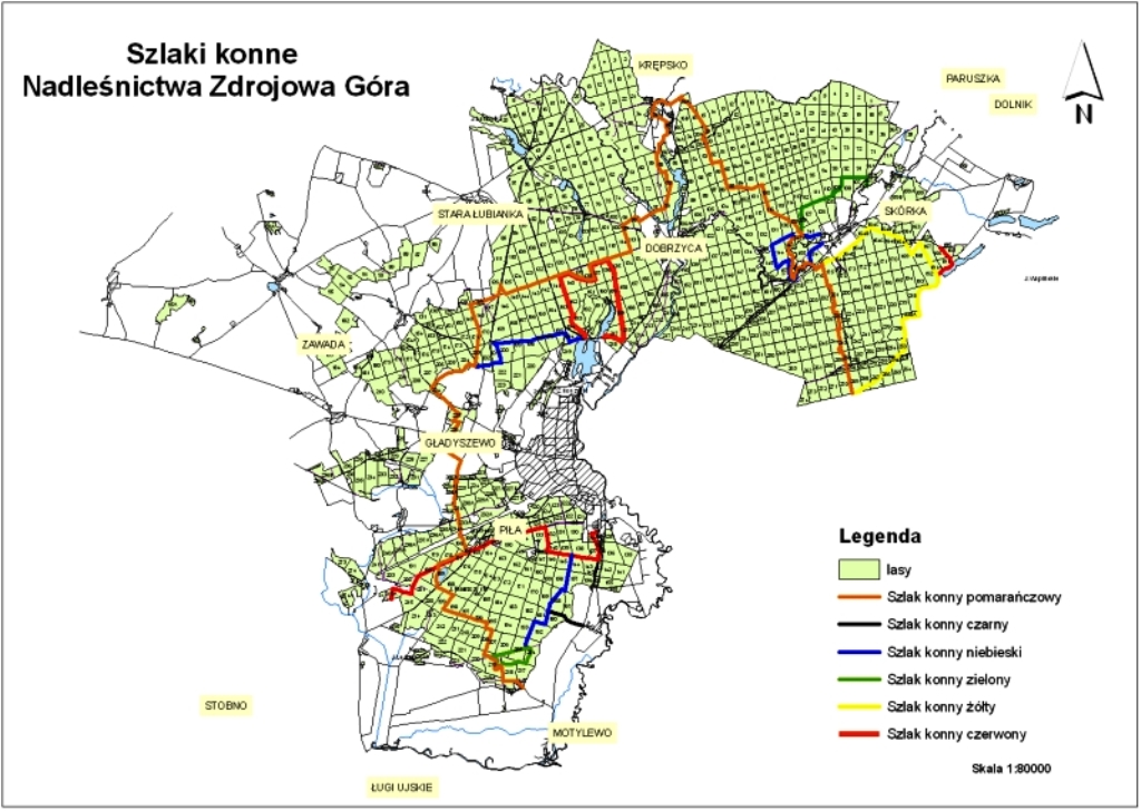 Przez najatrakcyjniejsze tereny prowadzą doskonale przygotowane i oznaczone szlaki turystyczne – piesze, rowerowe i konne. Miłośników przyrody zachęcamy do odwiedzenia ścieżek przyrodniczo-dydaktycznych przygotowanych przez leśników: w Nadleśnictwie Kaczory - „Smok” (rowerowa, 20 km), „Dębowa Góra” (rowerowa, 9,5 km) i „Kręta” (rowerowa, 6,5 km) oraz w Nadleśnictwie Zdrojowa Góra – leśna ścieżka edukacyjna przy szkółce leśnej w Dobrzycy. Przemierzając te trasy, można podziwiać bardzo ciekawe miejsca, pomnikowe drzewa oraz oglądać chronione gatunki fauny i flory.